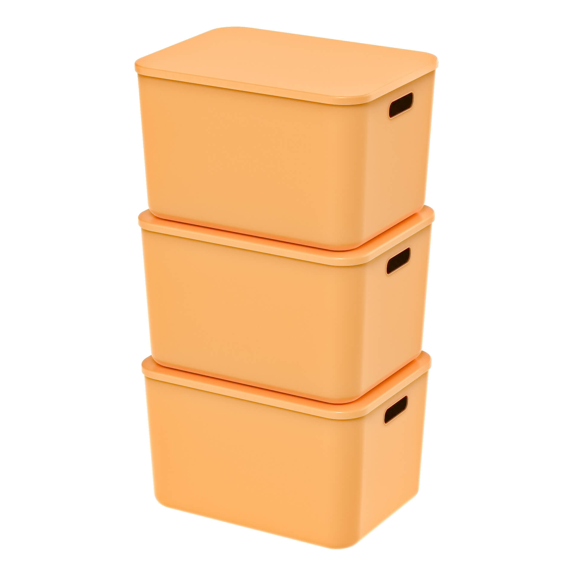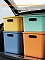 Благодаря вкладываемой конструкции, ящики можно компактно складывать при хранении, а с крышкой их легко штабелировать. Открытые ручки обеспечивают удобную транспортировку.