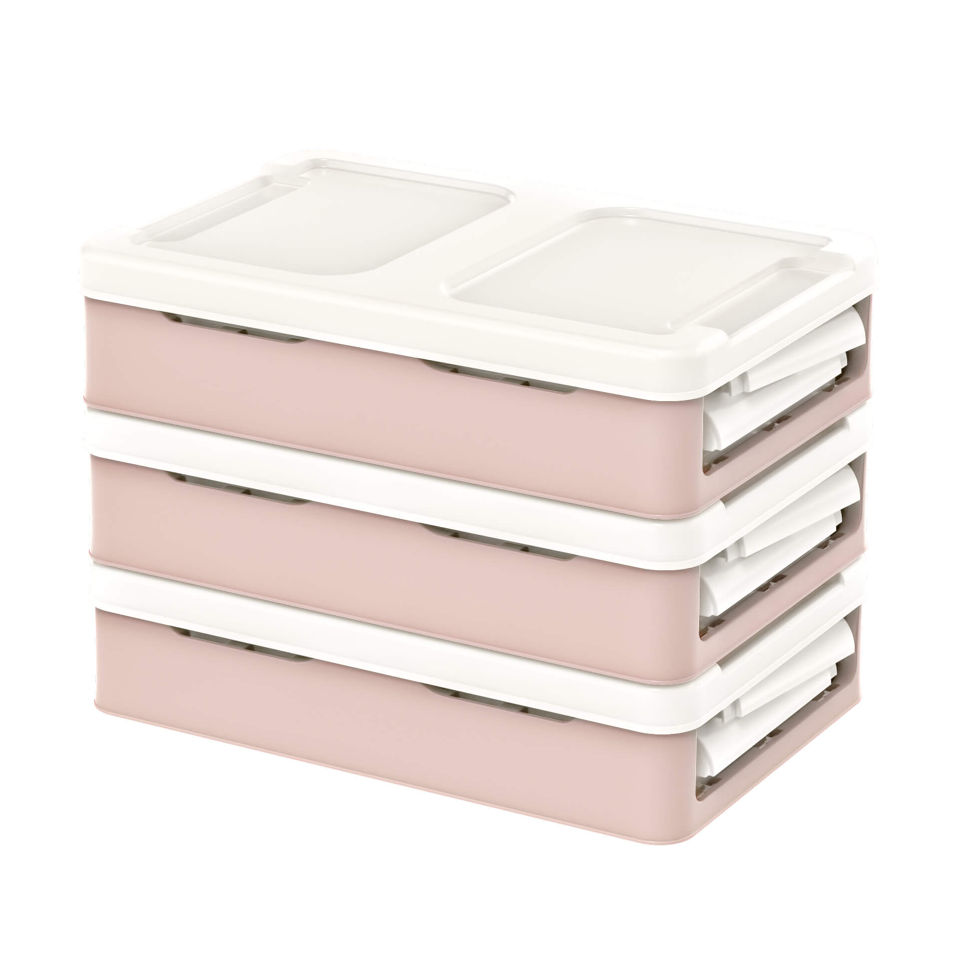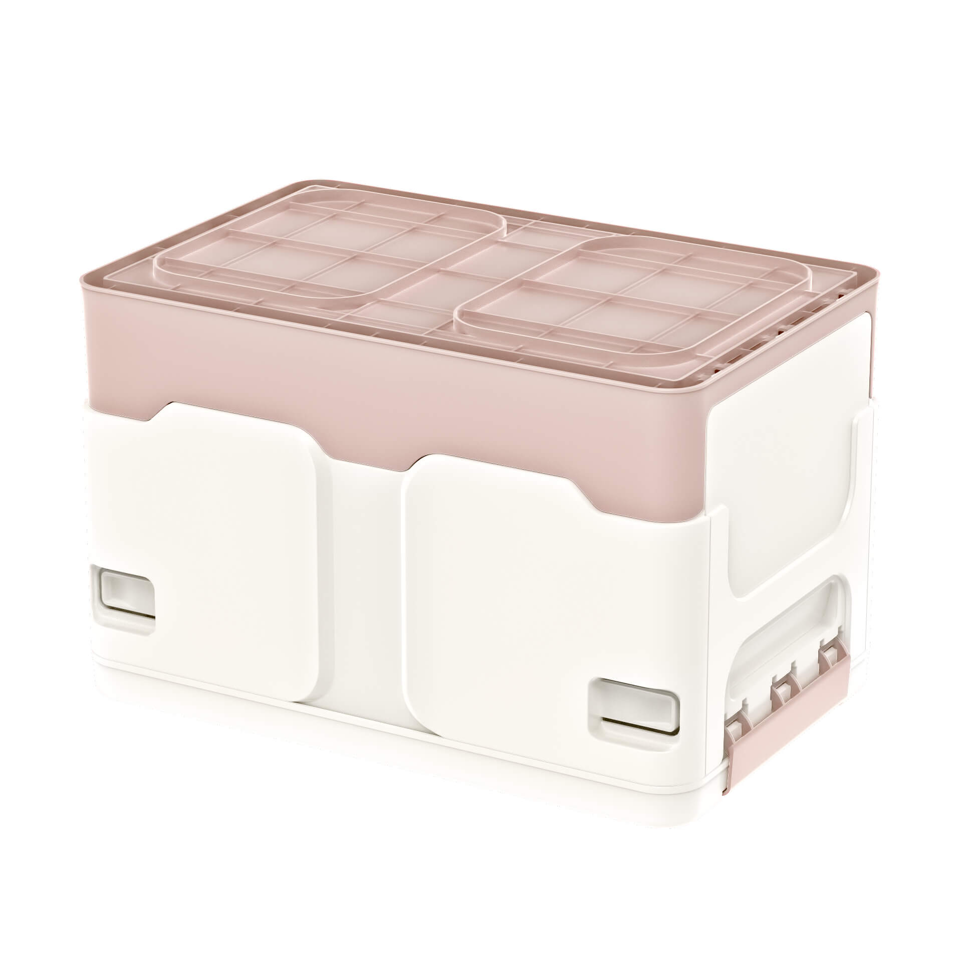Ящик пластиковый складной белый, дно розовое, 370х240х240 мм