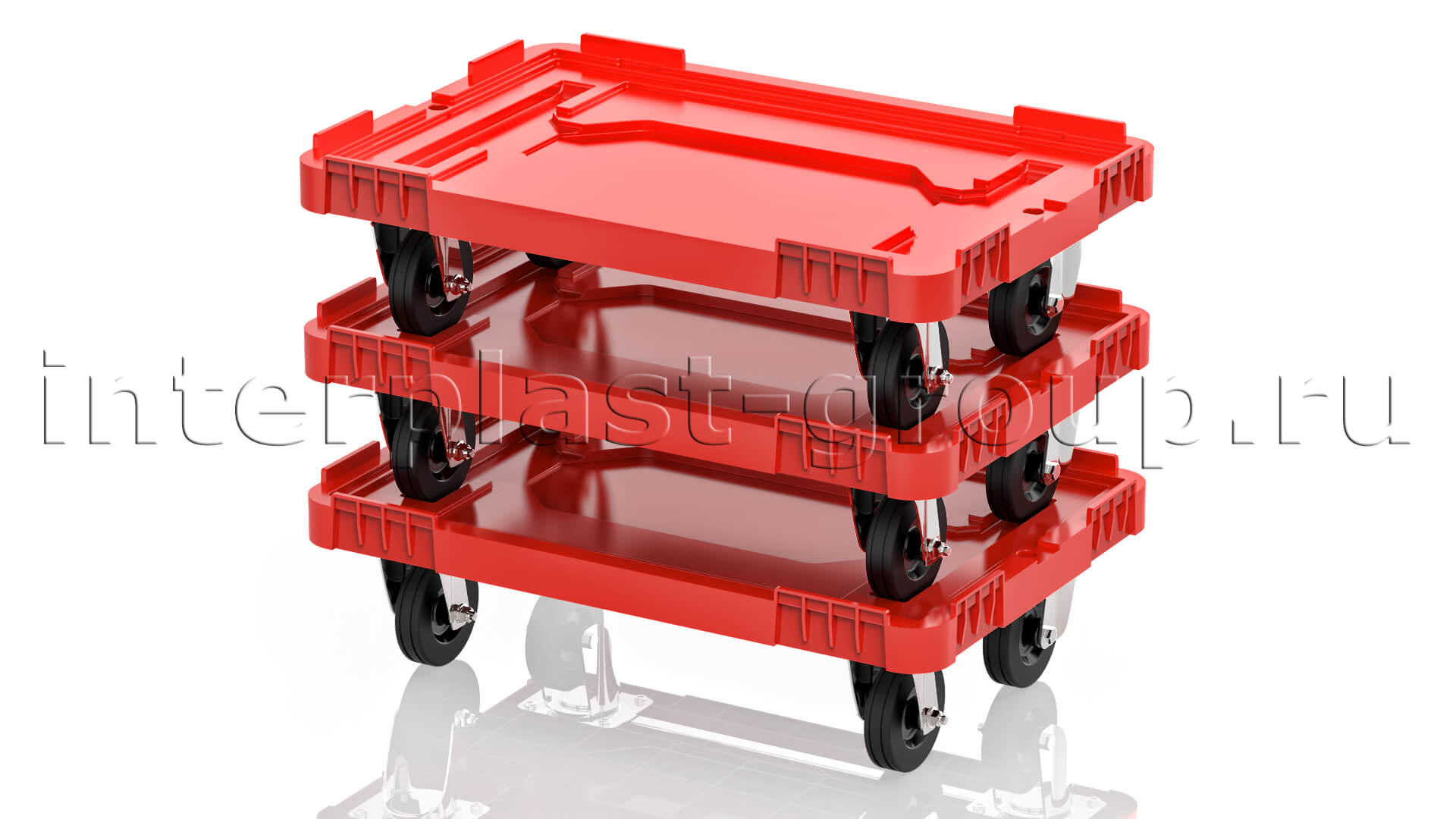 Тележка пластиковая сплошная без тормозов усиленная красная в Белорецке
