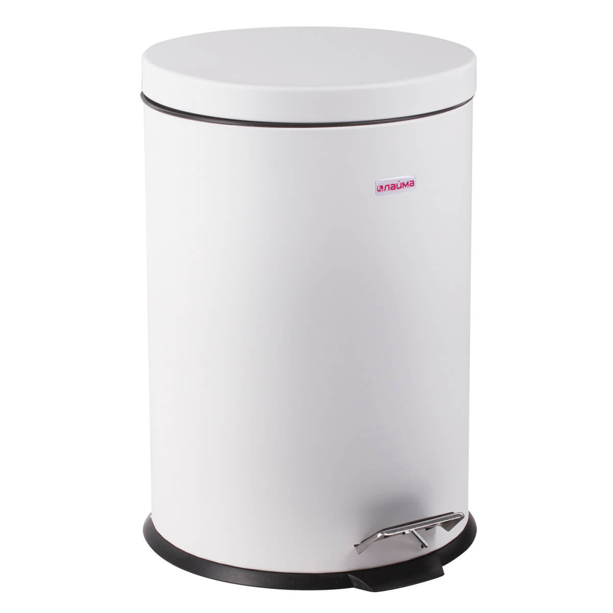 Ведро-контейнер для мусора (урна) с педалью LAIMA Classic, 12 л, белое, глянцевое, металл, со съемным внутренним ведром